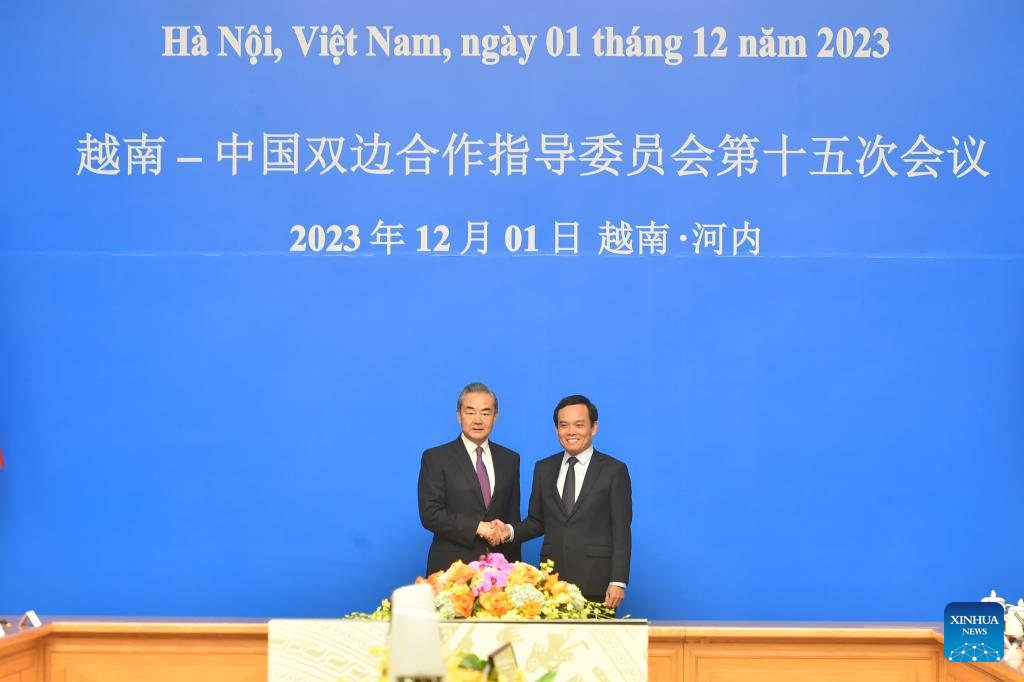 The 15th meeting of the China-Vietnam Steering Committee for Bilateral Cooperation, co-chaired by Chinese Foreign Minister Wang Yi, also a member of the Political Bureau of the Communist Party of China (CPC) Central Committee and director of the Office of the Foreign Affairs Commission of the CPC Central Committee, and Vietnamese Deputy Prime Minister Tran Luu Quang, is held in Hanoi, Vietnam, on Dec. 1, 2023. (Xinhua/Hu Jiali)