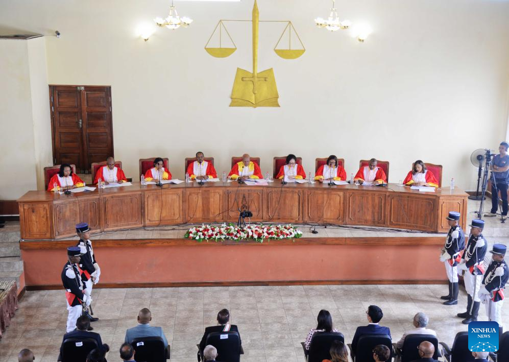 Madagascar's High Constitutional Court announces the result of the first round of the presidential election in Antananarivo, Madagascar, Dec. 1, 2023. (Photo by Sitraka Rajaonarison/Xinhua)
