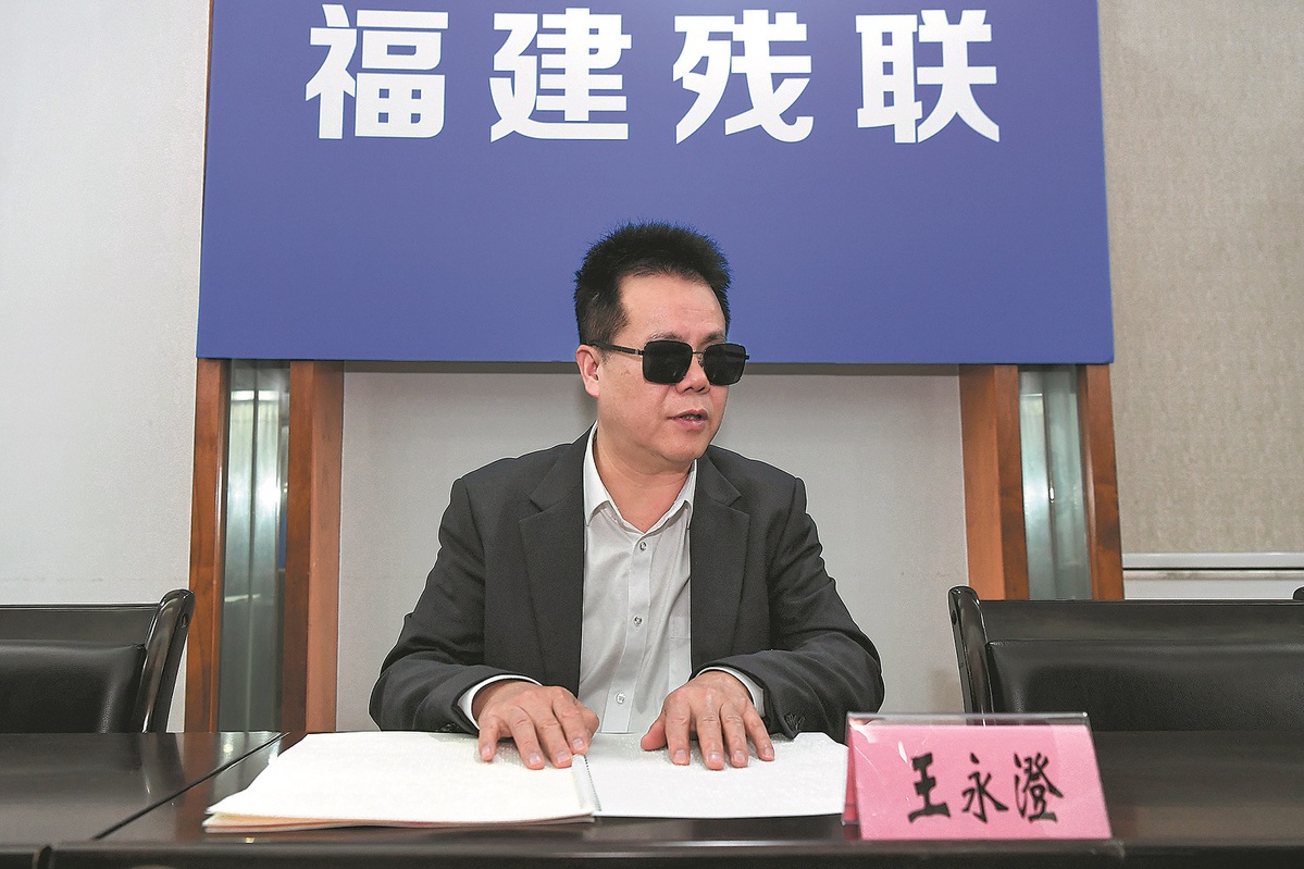 In his office in Fuzhou, Fujian province, on Nov 13, his fingertips traced the raised dots on the Braille documents. Wang, a deputy to the 14th National People's Congress, then declared with a sense of satisfaction, "This is a tangible response to my suggestions."