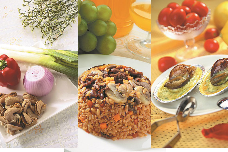 From left: Snails with other ingredients for a dish; snails fried with rice; baked snails. CHINA DAILY