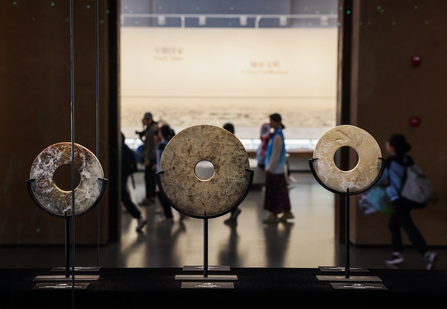 Tourists visit the Liangzhu Museum in Hangzhou, capital city of east China's Zhejiang Province, Nov. 7, 2023. (Xinhua/Xu Yu)