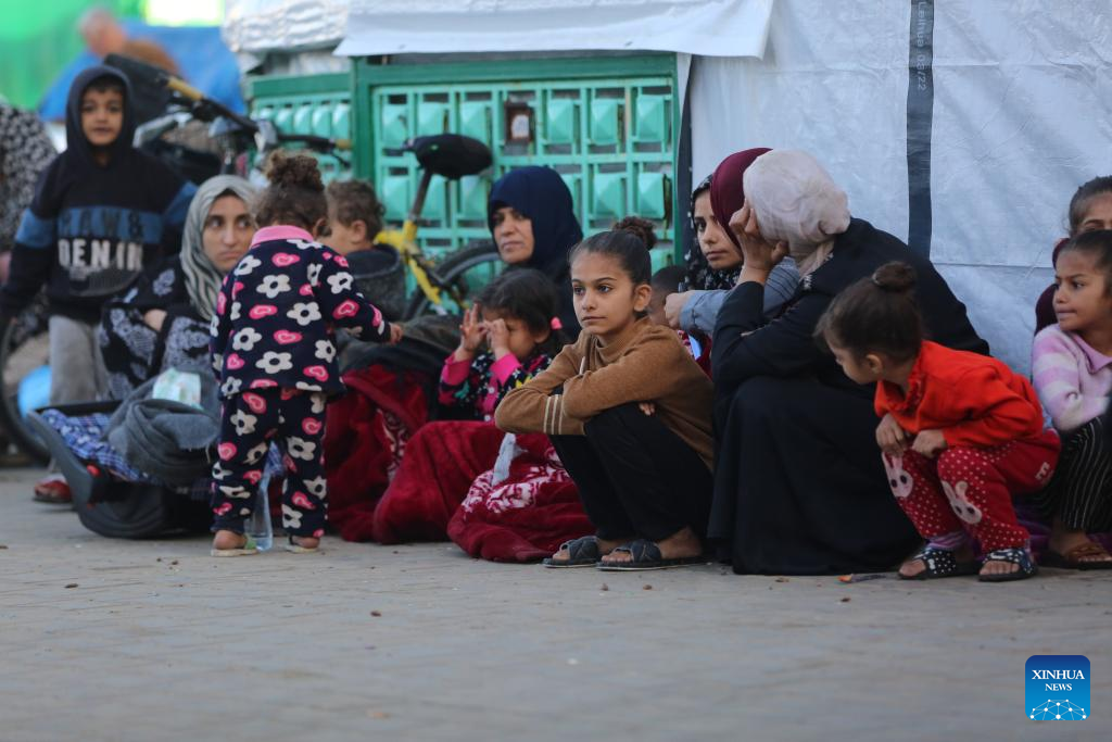 Homeless people are pictured at a hospital in central Gaza Strip city of Deir el-Balah, Dec. 3, 2023. (Xinhua)