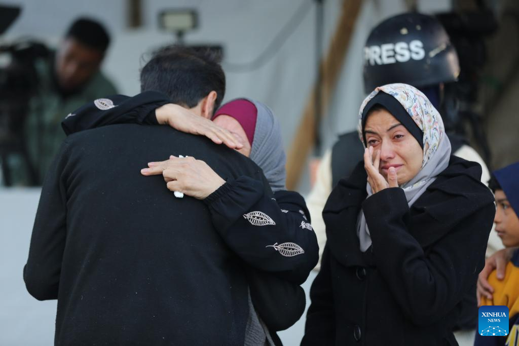 People mourn for victims killed in airstrikes in central Gaza Strip city of Deir el-Balah, Dec. 3, 2023. (Xinhua)