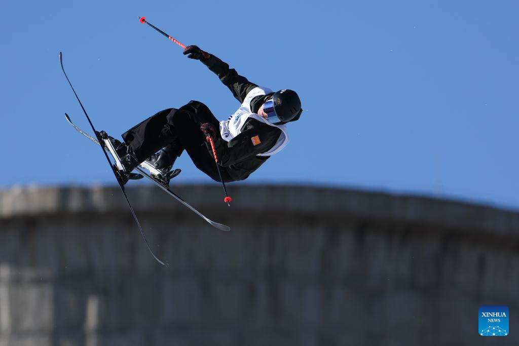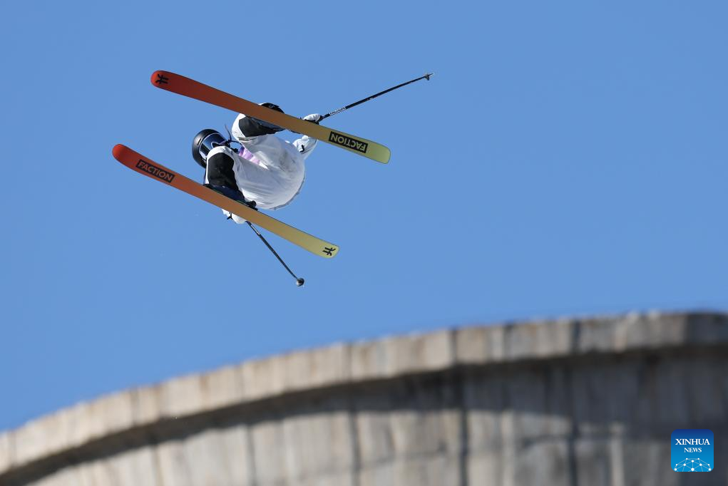 Kirsty Muir of Britain competes during women's freeski big air final at the FIS Snowboard and Freeski Big Air World Cup at Big Air Shougang in Beijing, capital of China, Dec. 2, 2023. (Xinhua/Ju Huanzong)