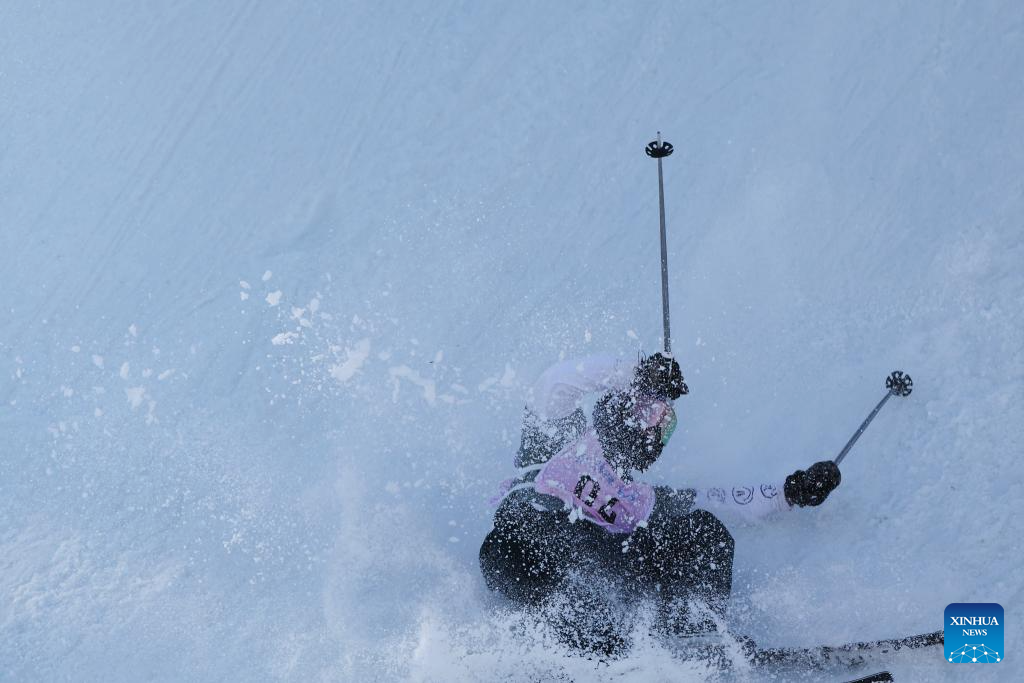 Liu Mengting of China competes during women's freeski big air final at the FIS Snowboard and Freeski Big Air World Cup at Big Air Shougang in Beijing, capital of China, Dec. 2, 2023. (Xinhua/Ju Huanzong)