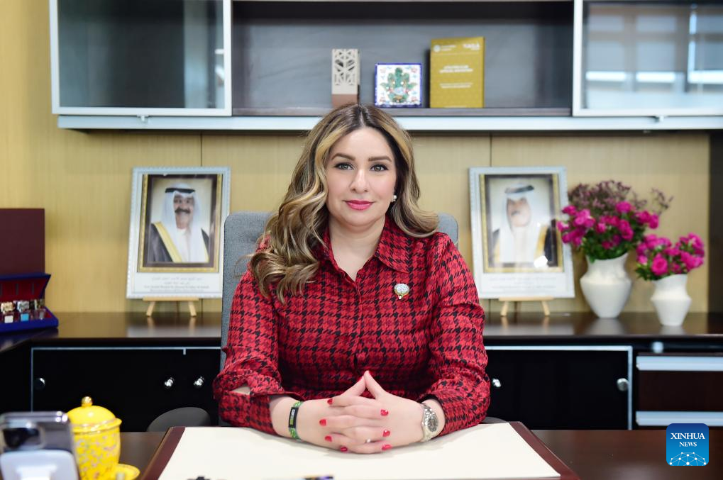 Hebah Abbas, chairwoman of the sustainability committee at the Kuwait Water Association, reacts during an interview with Xinhua at her office in Hawalli Governorate, Kuwait, Dec. 3, 2023. (Xinhua/Yin Ke)