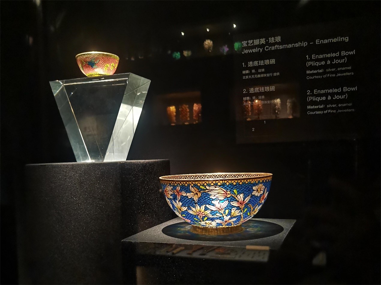 Photo shows two enameled bowls exhibited at the Shenzhen Jewelry Museum in Shenzhen, south China’s Guangdong Province, on Nov. 14, 2023. (People’s Daily Online/Chang Sha)