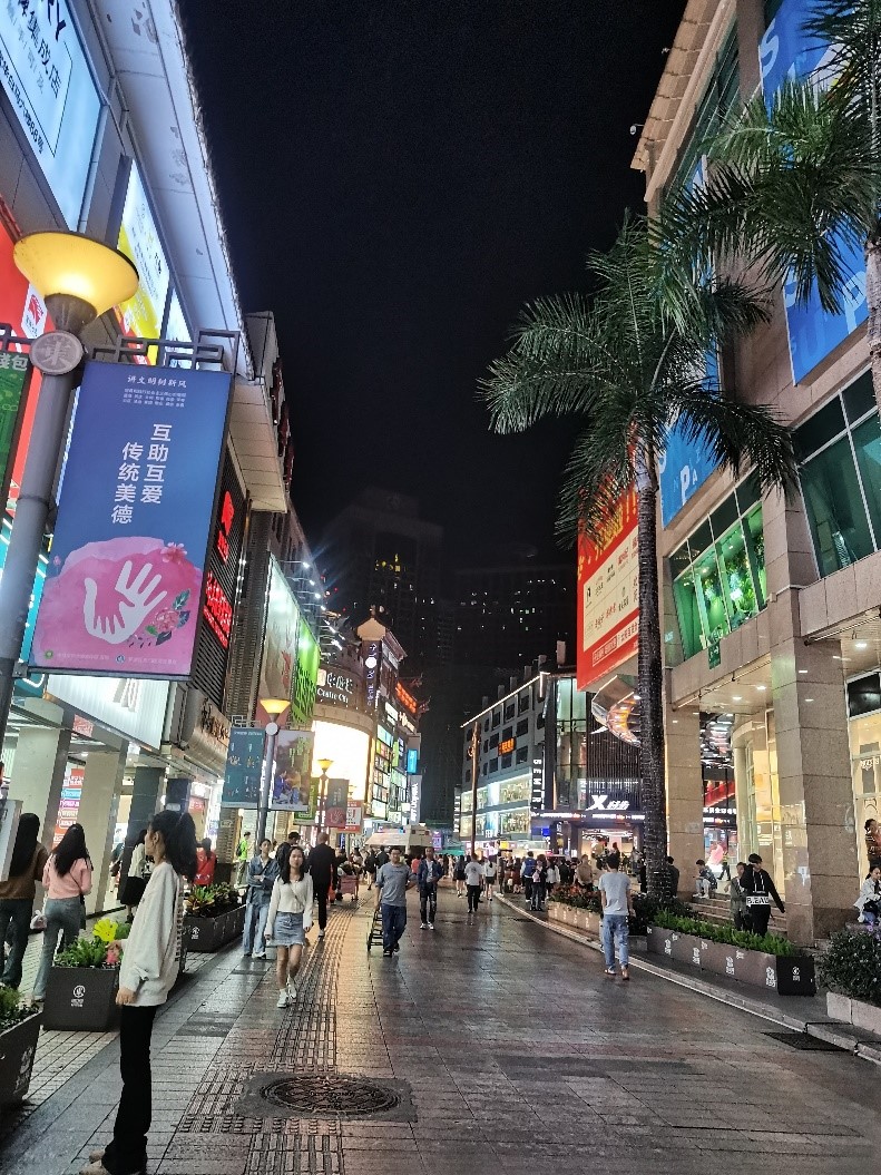 The pedestrian street is located near the Luohu Port, a land port between Shenzhen and Hong Kong. It has evolved into a consumption paradise for Hong Kong residents who come to visit the commercial landmark on weekends or holidays to enjoy their leisure time.