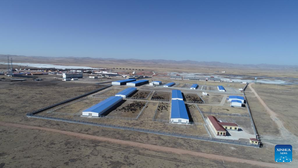 This aerial photo taken on March 10, 2022 shows a breeding base in Maqu County, Gannan Tibetan Autonomous Prefecture of northwest China's Gansu Province. (Xinhua)