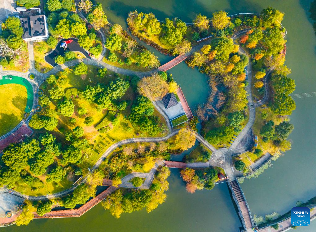 This aerial photo taken on Dec. 5, 2023 shows the scenery in Renjiu Village, Yinzhou District of Ningbo, east China's Zhejiang Province. (Photo by Hu Xuejun/Xinhua)
