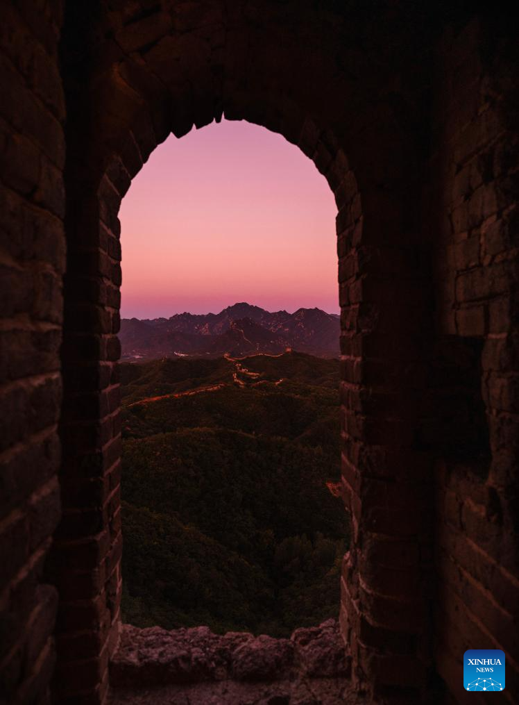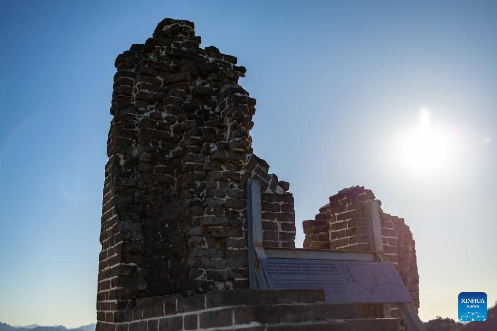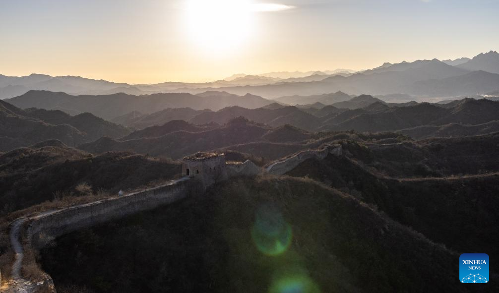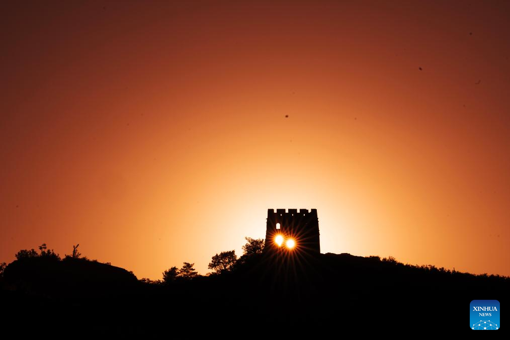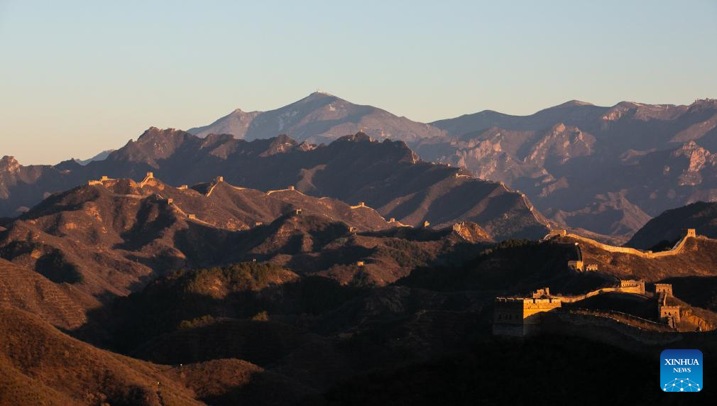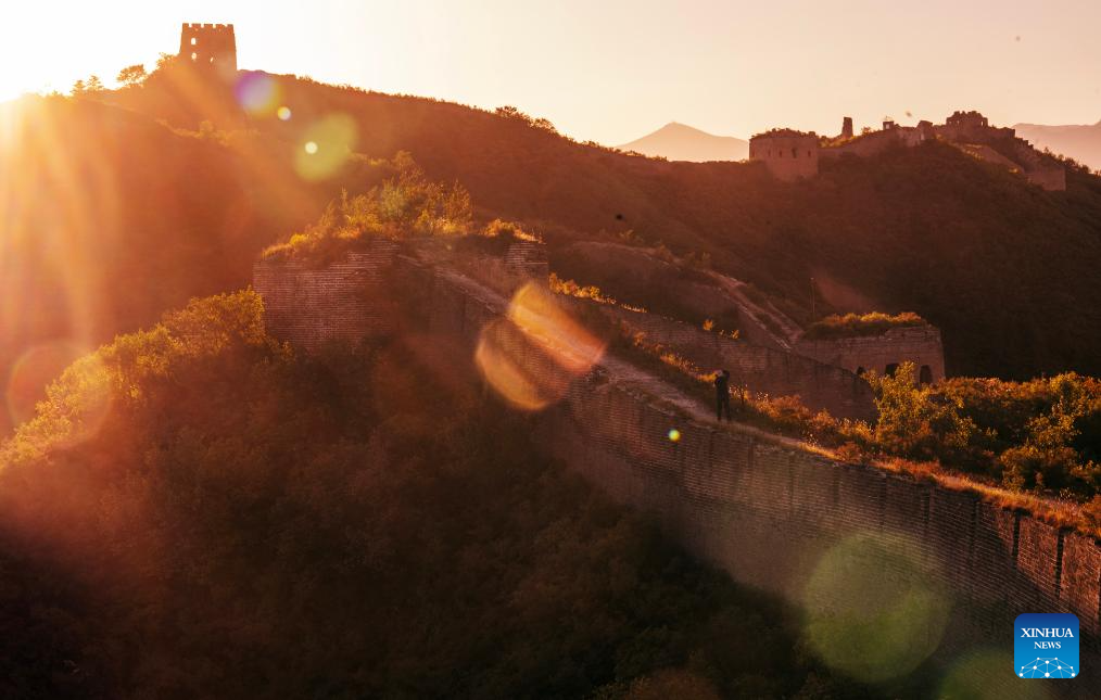 This photo taken on Sept. 28, 2023 shows the Gubeikou Great Wall at sunrise in Beijing, capital of China. (Xinhua/Fei Maohua)
