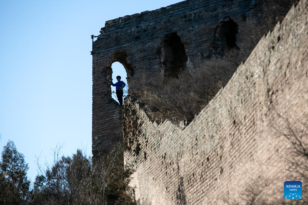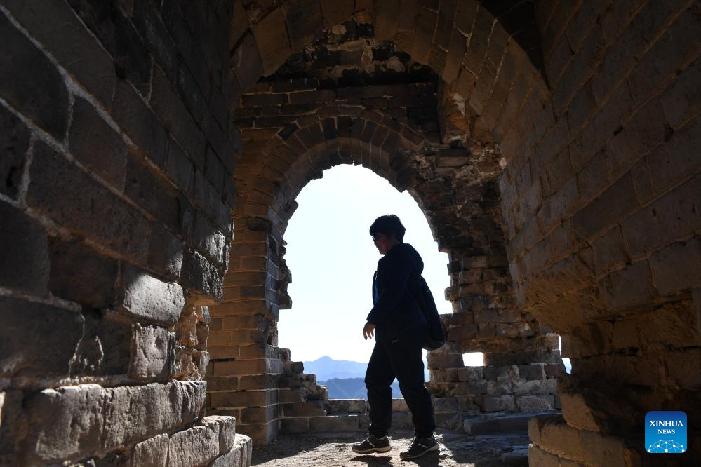 A tourist visits the Gubeikou Great Wall in Beijing, capital of China, Nov. 14, 2023. (Xinhua/Chen Bin)