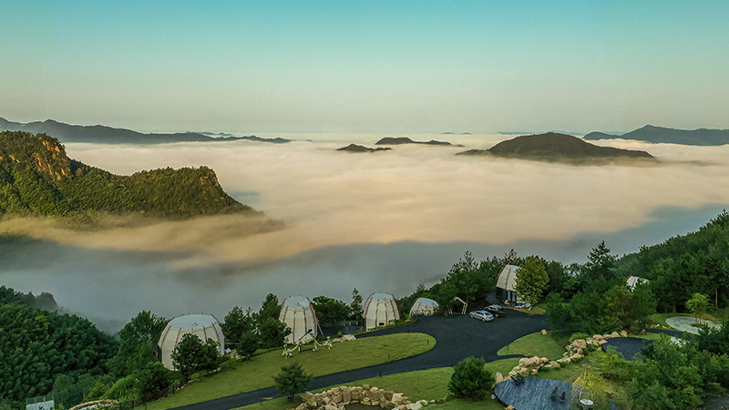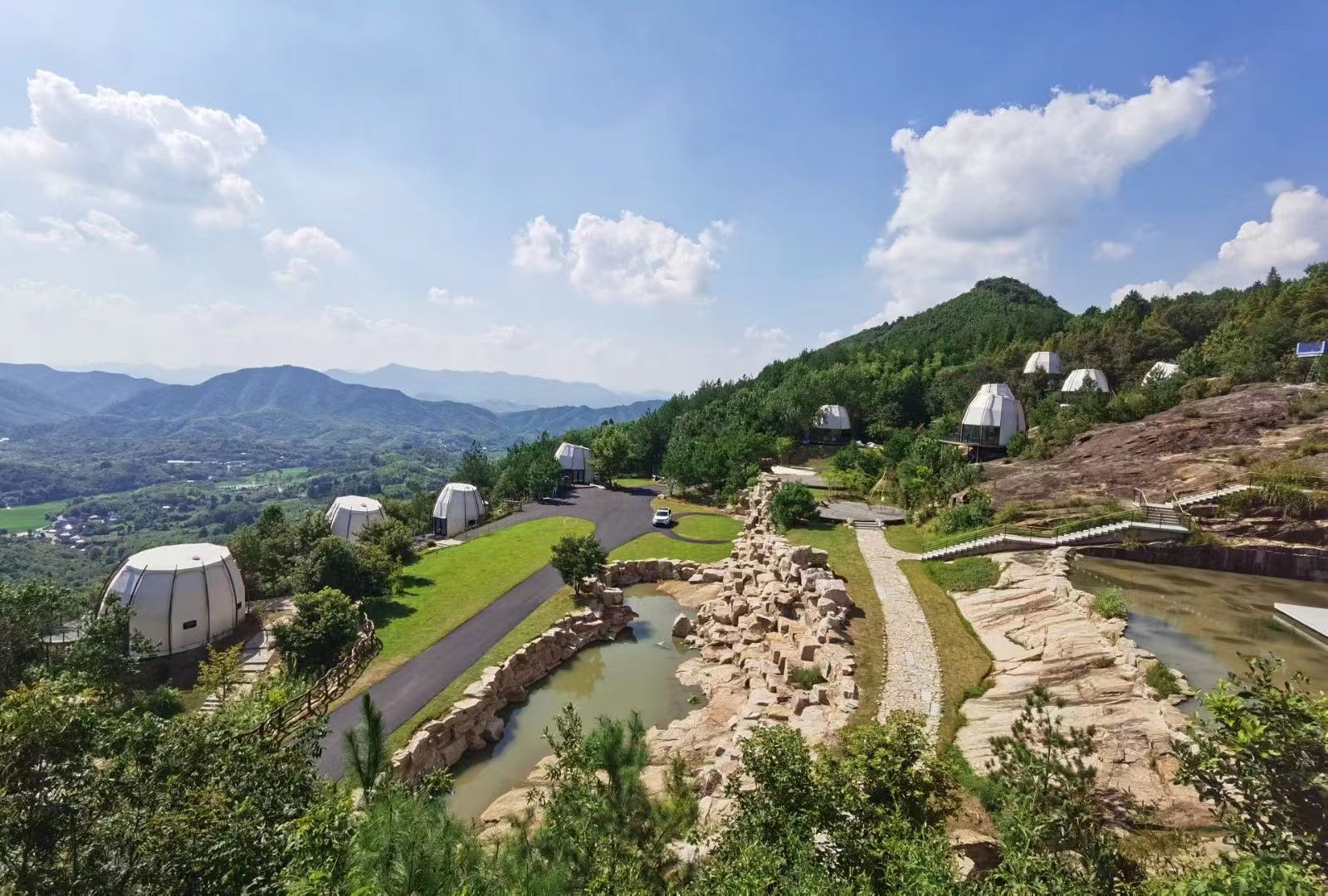 The tent hotel is a demonstration project for the market-oriented transformation of abandoned mining sites in Anhui Province. (Photo courtesy of the publicity department of the Communist Party of China Guangde municipal committee)
