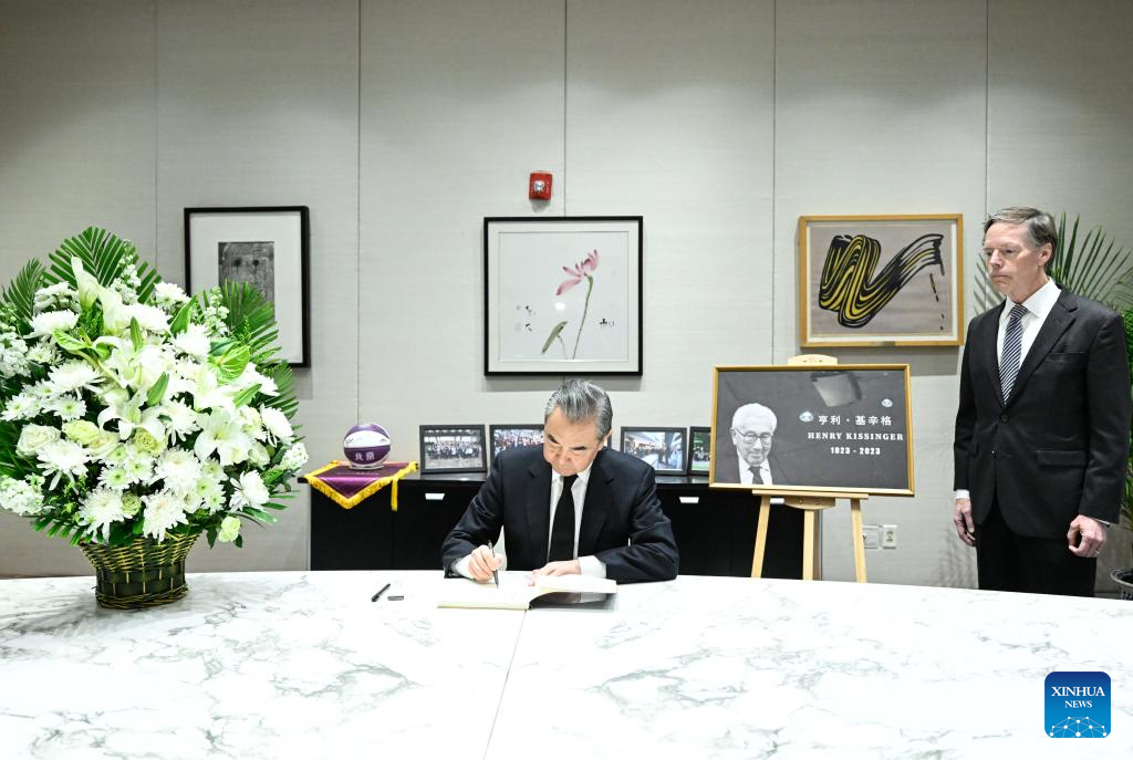 Wang, member of the Political Bureau of the Communist Party of China (CPC) Central Committee and director of the Office of the Foreign Affairs Commission of the CPC Central Committee, wrote in the condolence book and expressed deep condolences for the passing of Dr. Kissinger.