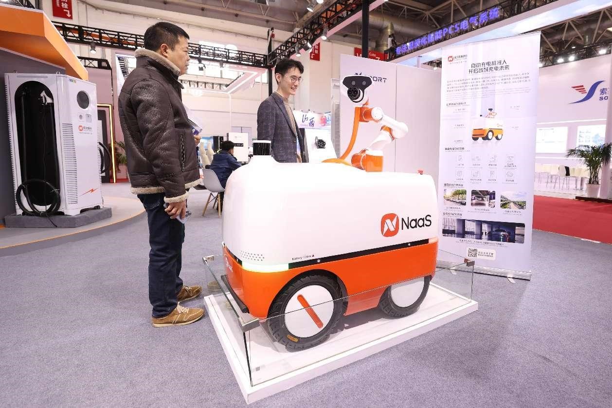 A charging robot is exhibited at the first China International Supply Chain Expo held in Beijing, Nov. 29, 2023. (People's Daily Online/Chen Xiaogen)