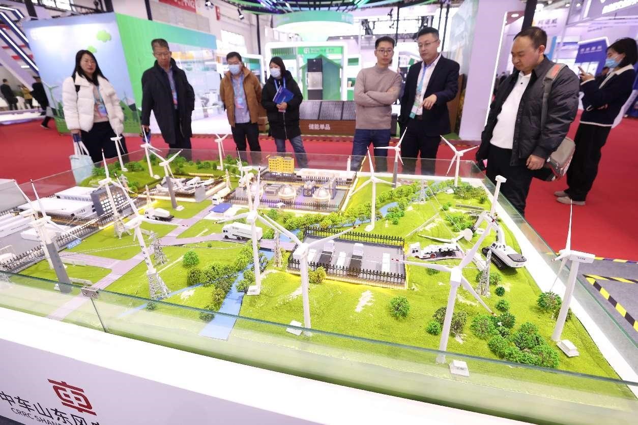 A model displaying hydrogen production is exhibited at the first China International Supply Chain Expo held in Beijing, Nov. 29, 2023. (People's Daily Online/Chen Xiaogen)