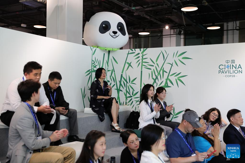 Attendees attend a side event at China's pavilion of the 28th session of the Conference of the Parties to the United Nations Framework Convention on Climate Change (COP28), in Dubai, the United Arab Emirates, Dec. 6, 2023. (Xinhua/Wang Dongzhen)