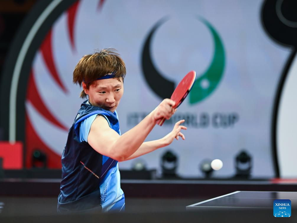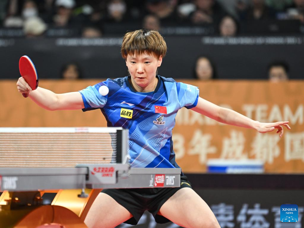 Wang Manyu of China competes during the stage 2 women's singles match against Barbora Balazova of Slovakia at the ITTF Mixed Team World Cup 2023 in Chengdu, southwest China's Sichuan Province, Dec. 6, 2023. (Xinhua/Wang Xi)