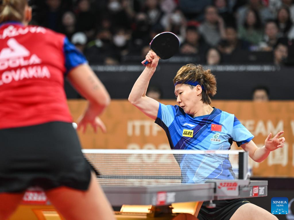 CHENGDU, Dec. 6 (Xinhua) -- China sailed past Slovakia 8-1 as the International Table Tennis Federation (ITTF) Mixed Team World Cup entered its second stage in Chengdu, southwest China's Sichuan Province on Wednesday.