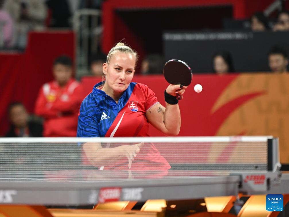 Barbora Balazova of Slovakia competes during the stage 2 women's singles match against Wang Manyu of China at the ITTF Mixed Team World Cup 2023 in Chengdu, southwest China's Sichuan Province, Dec. 6, 2023. (Xinhua/Wang Xi)