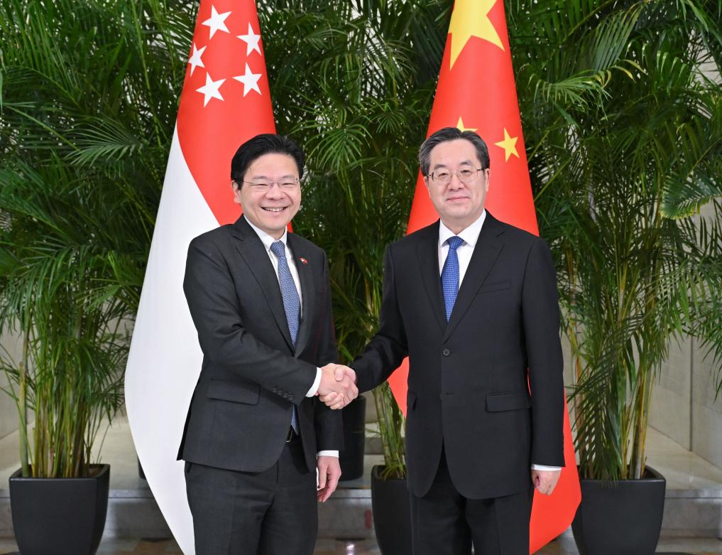 The news came as Ding Xuexiang, member of the Standing Committee of the Political Bureau of the Communist Party of China Central Committee and vice premier of the State Council, met in Tianjin with Deputy Prime Minister and Minister for Finance of the Republic of Singapore Lawrence Wong.