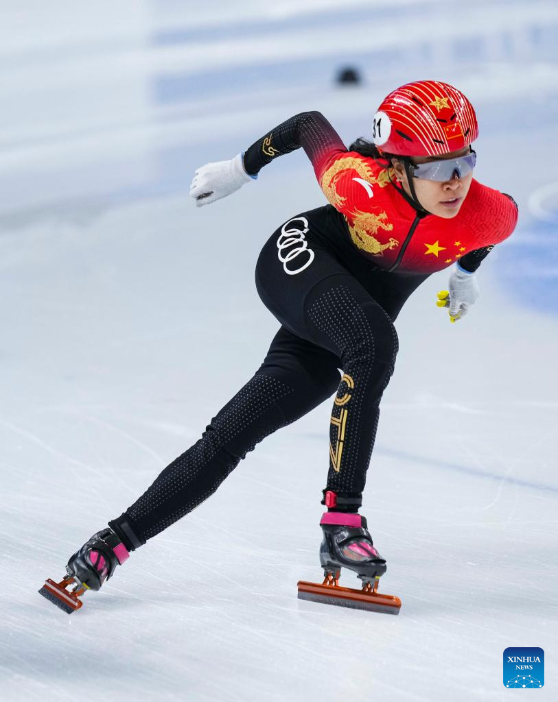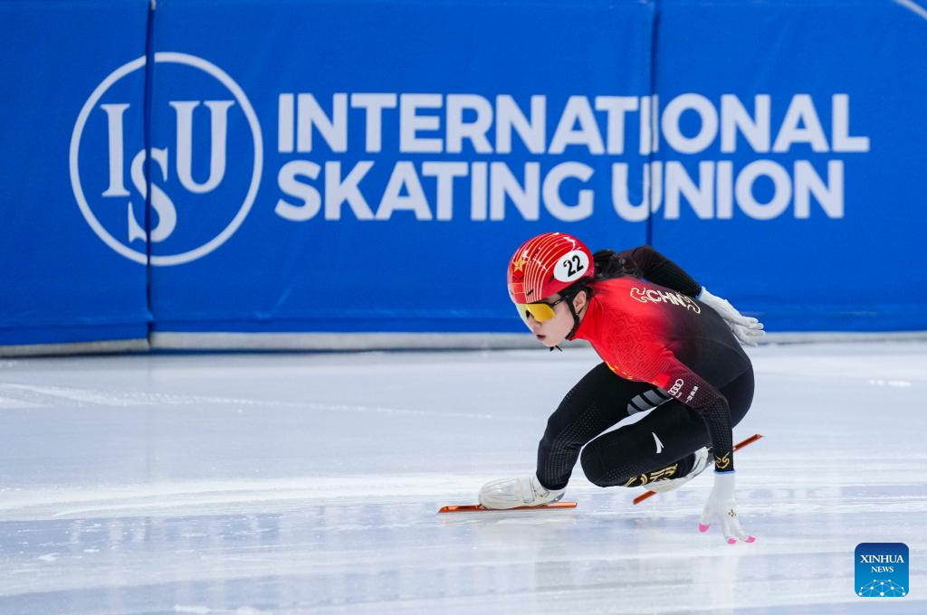 Gong Li of China competes during the women's 1500m quarterfinal at the ISU World Cup Short Track Speed Skating series in Beijing, China, Dec. 8, 2023. (Xinhua/Sun Fei)