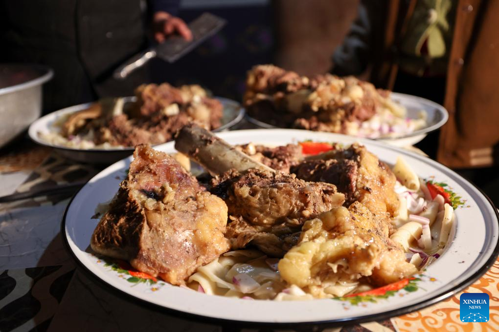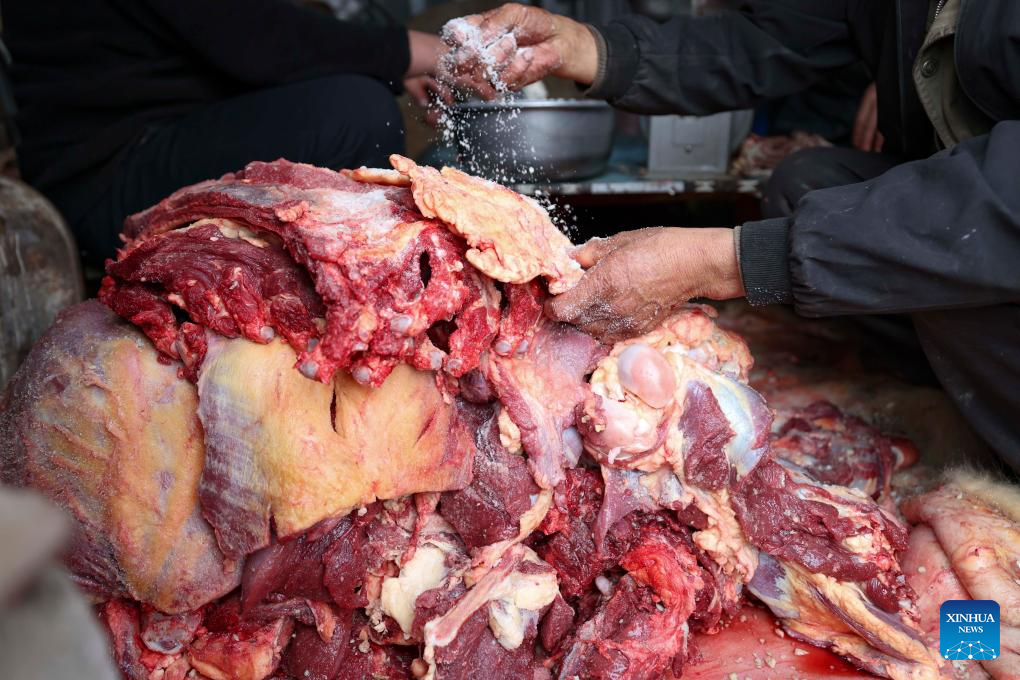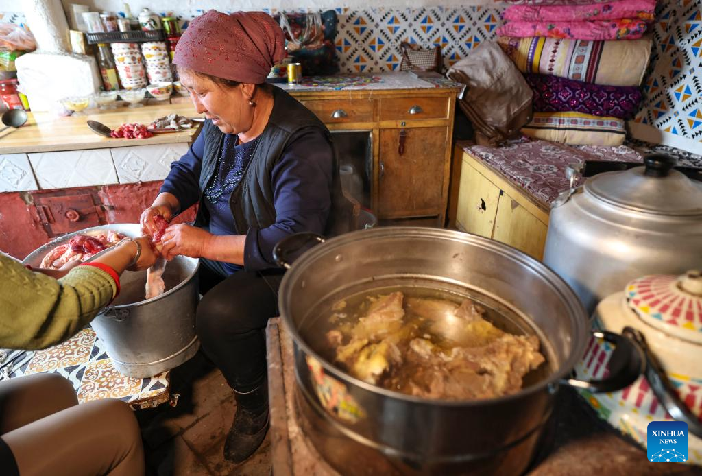 Pic story: Kazak herders stock meat and enjoy family gathering in Xinjiang