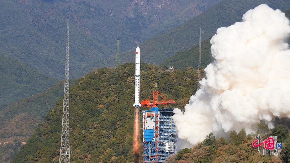 The rocket blasted off at 9:58 am from the Xichang Satellite Launch Center in southwest China's Sichuan province, spitting red-orange flames and soaring into bright skies, which was caught on video published by the Shanghai Academy of Spaceflight Technology, the maker of the Long March 2D series.