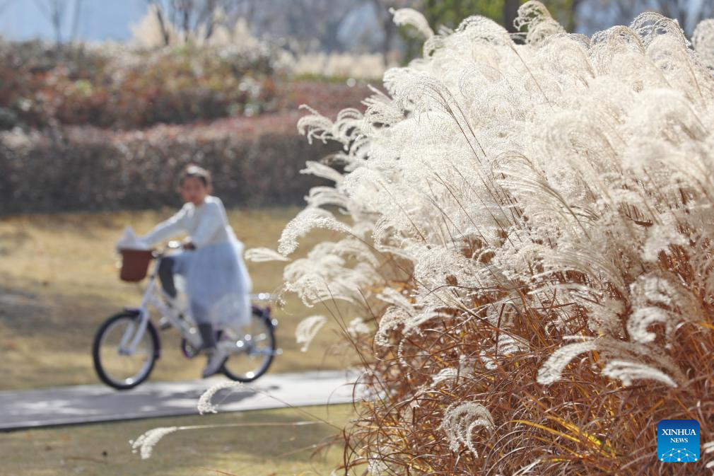 A child rides a bike at a park in Jiaxing, east China's Zhejiang Province, Dec. 9, 2023. (Photo by Jin Peng/Xinhua)