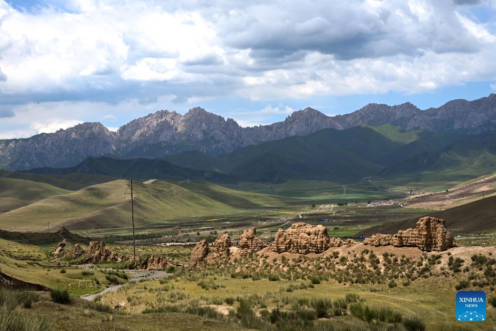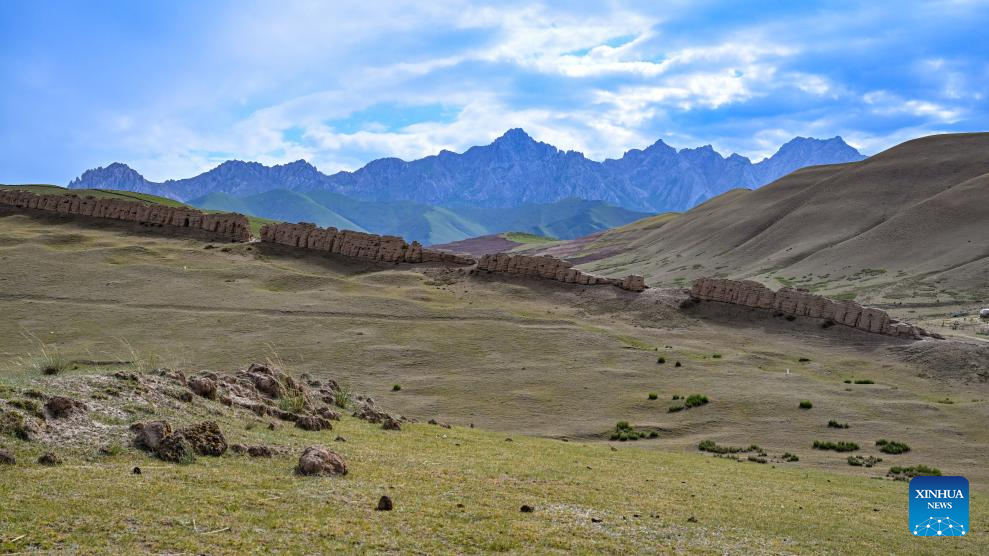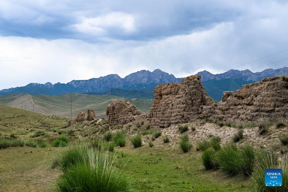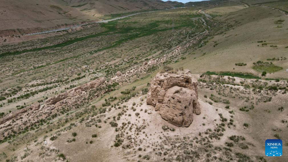 This photo taken on July 16, 2023 shows a part of the Great Wall in Tianzhu Tibetan Autonomous County in Wuwei, northwest China's Gansu Province. Gansu Province is home to multiple sections of the Great Wall that add up to 3,654 kilometers in length. The Hexi Corridor, a critical part of the ancient Silk Road winding through south of the province, boasts more than 1,400 kilometers of the Wall built in the Han Dynasty (202 BC-220 AD), and over 1,200 kilometers erected in the Ming Dynasty (1368-1644). Gansu is therefore dubbed "an open-air museum of the Great Wall." (Xinhua/Chen Zhonghao)