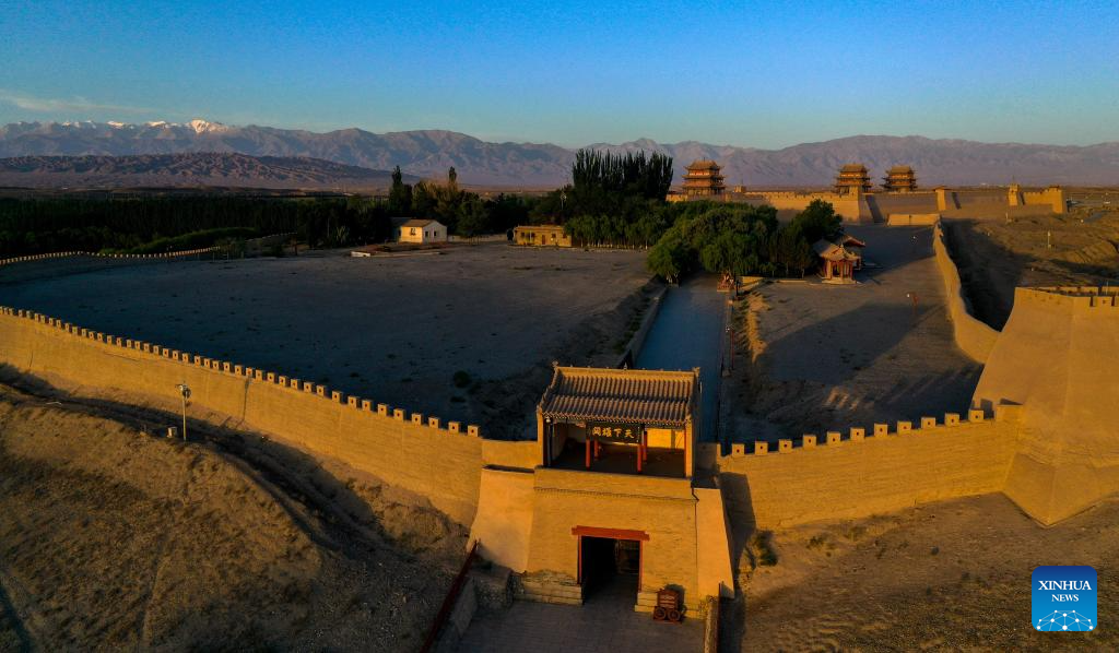This aerial photo taken on July 14, 2023 shows Jiayu Pass, a famed part of the Great Wall, in Jiayuguan City, northwest China's Gansu Province. Gansu Province is home to multiple sections of the Great Wall that add up to 3,654 kilometers in length. The Hexi Corridor, a critical part of the ancient Silk Road winding through south of the province, boasts more than 1,400 kilometers of the Wall built in the Han Dynasty (202 BC-220 AD), and over 1,200 kilometers erected in the Ming Dynasty (1368-1644). Gansu is therefore dubbed "an open-air museum of the Great Wall." (Xinhua/Fang Xin)