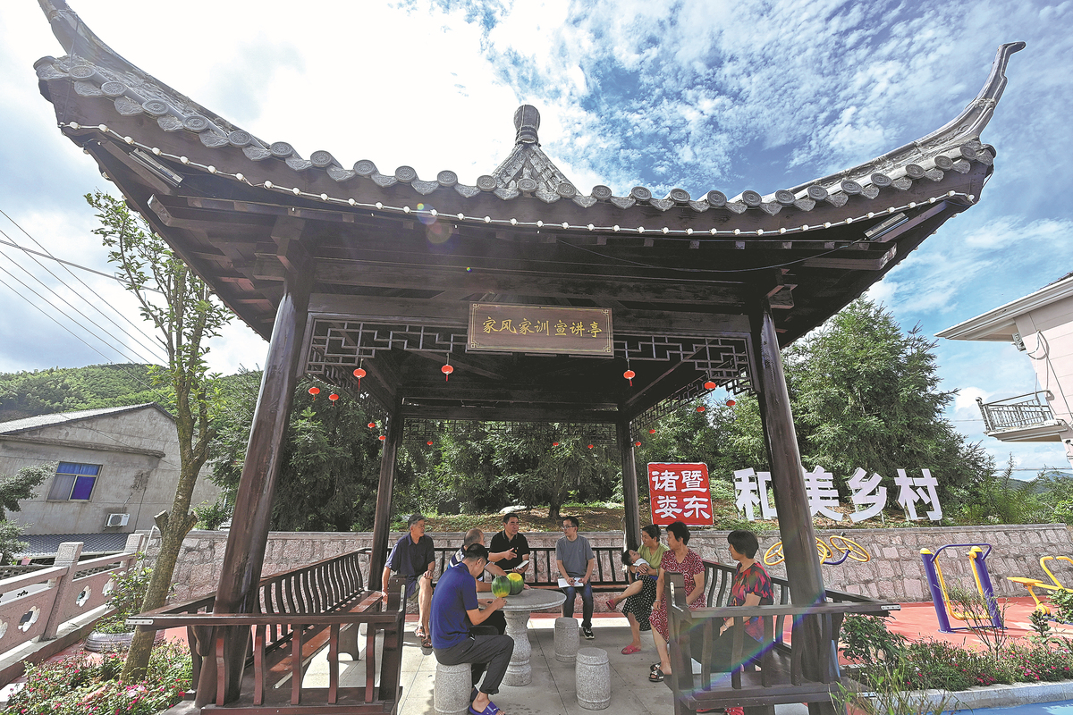 Officials from Dongbaihu town, Zhuji city, Zhejiang province, meet with local villagers in July to exchange views on livelihood projects and seek suggestions from the residents. [Photo/Xinhua]