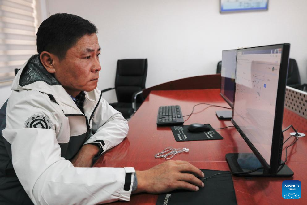Yang Diangang, an associate researcher from the cultural heritage monitoring center of Jiayuguan Silk Road (the Great Wall) cultural research institute, checks the monitoring system at the Jiayu Pass scenic area in Jiayuguan City, northwest China's Gansu Province, Sept. 26, 2023. In recent years, cultural heritage protection institutions have increased the investment in the technological protection of the Great Wall. Institutions utilize technological equipment to collect data, analyze metrics and detect any possible damage. These methods guarantee the implementation of effective preservation and restoration measures in time and the Great Wall well-preserved. (Xinhua/Fang Xin)