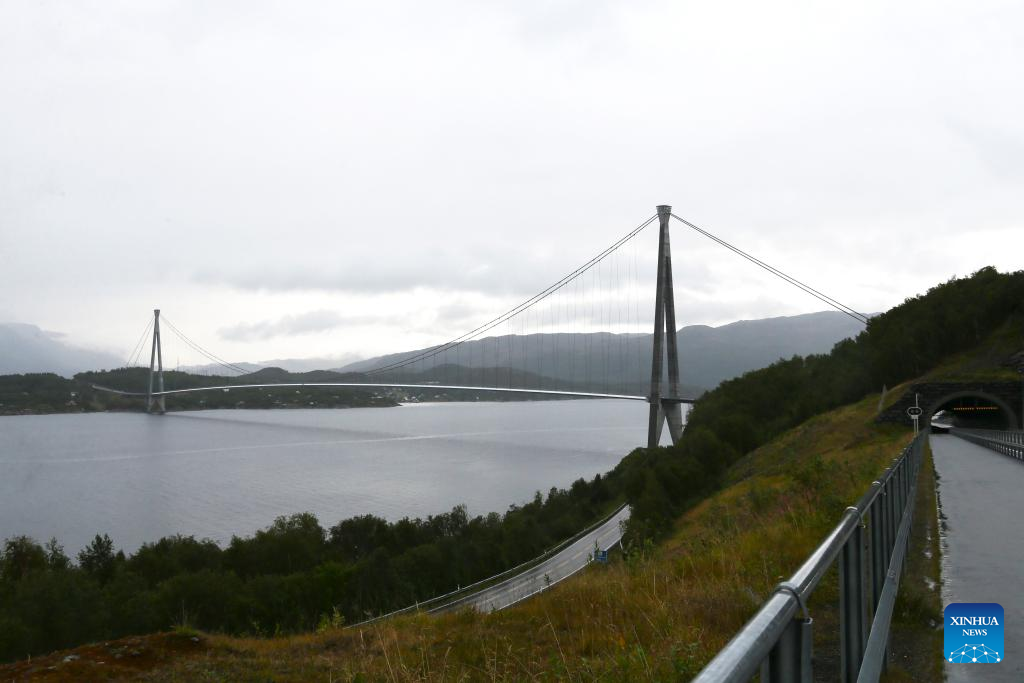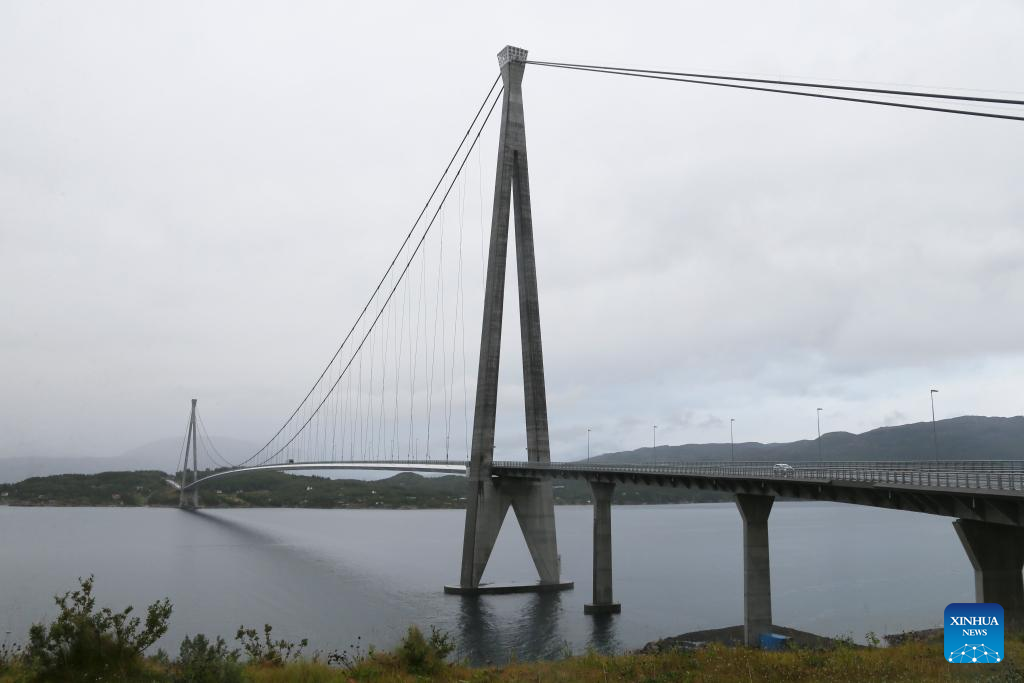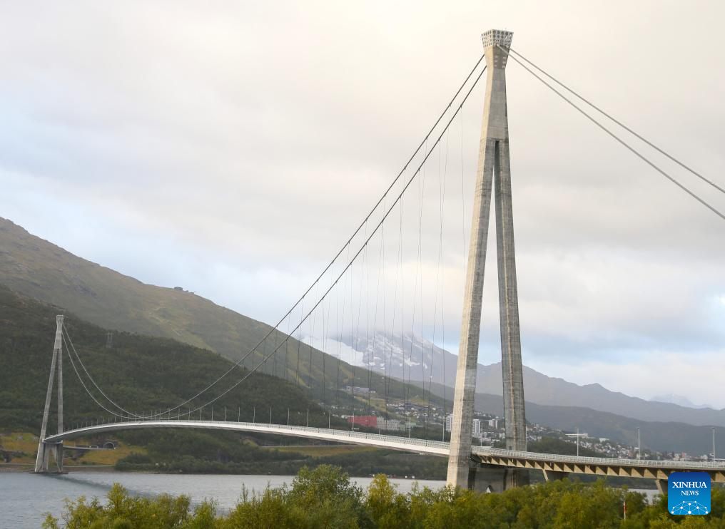 This photo taken on Sept. 4, 2023 shows the Halogaland Bridge near Norway's northern port city of Narvik. (Xinhua/Zhang Yuliang)