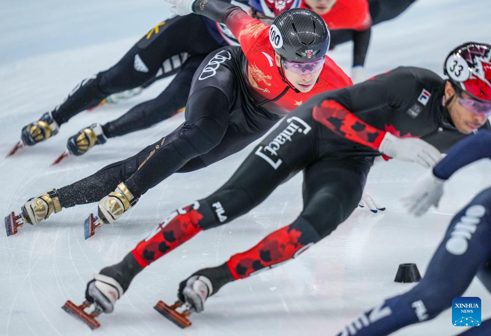 Liu Shaoang of China competes during the men's 1000m final at the ISU World Cup Short Track Speed Skating series in Beijing, China, Dec. 10, 2023. (Xinhua/Sun Fei)