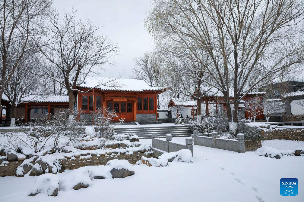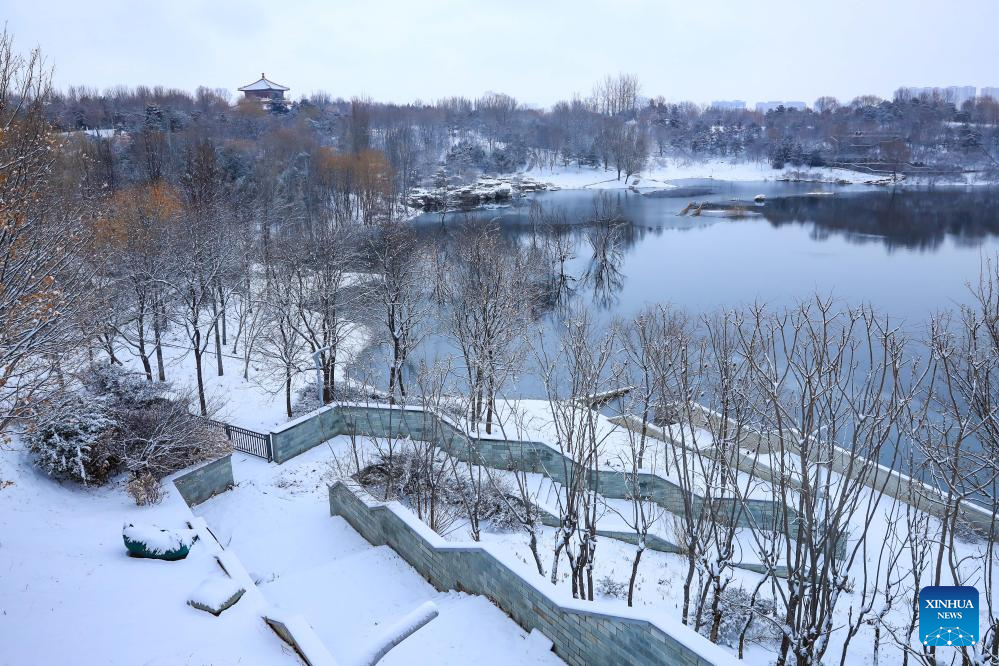 This photo taken on Dec. 11, 2023 shows the snow scenery of the Beijing Garden Expo Park in Beijing, capital of China. (Xinhua/Zhang Cheng)