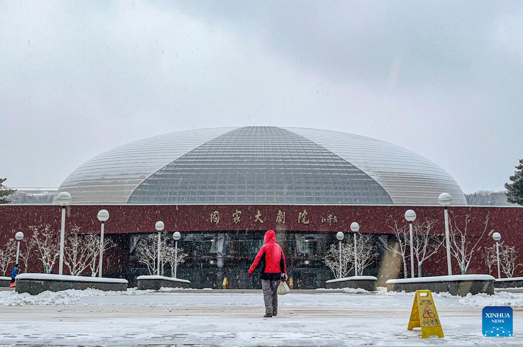 This photo taken with a mobile phone shows the snow scenery of the National Center for the Performing Arts in Beijing, capital of China, Dec. 11, 2023. (Xinhua/Bai Xuefei)