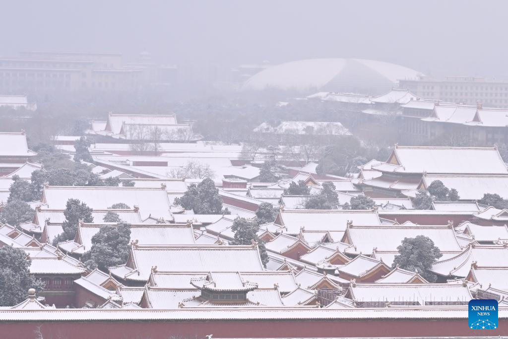 This photo taken at Jingshan Park shows the snow scenery in Beijing, capital of China, Dec. 11, 2023. (Xinhua/Li Xin)