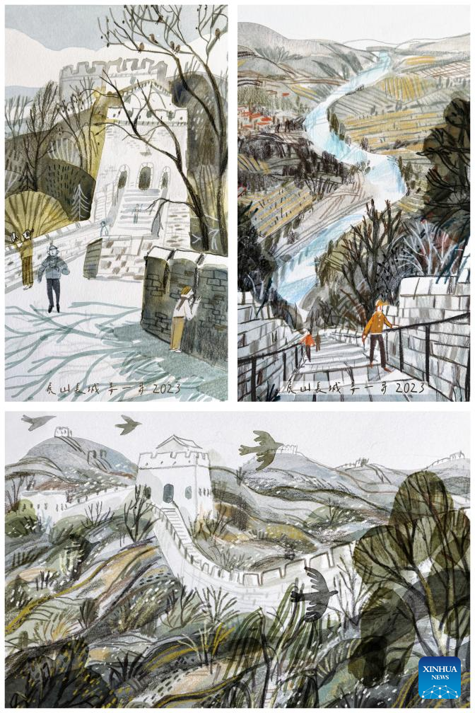 The magnificent view of the Great Wall has profoundly inspired Jiang's drawings. Through her captivating works shared on social media platforms, she has successfully caught a growing number of eyes, and aroused deeper interest in the history and culture related to the Great Wall among her audiences. (Xinhua/Zhang Cheng)
