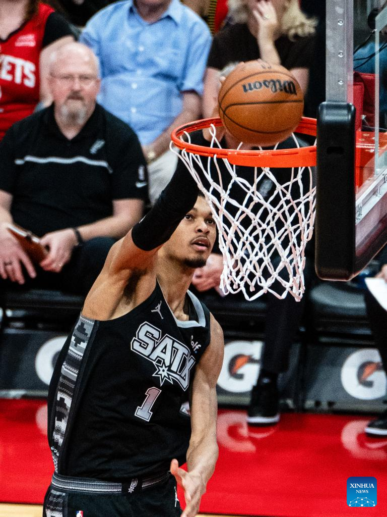 Victor Wembanyama of San Antonio Spurs dunks during the 2023-2024 NBA regular season match between Houston Rockets and San Antonio Spurs in Houston, the United States, on Dec. 11, 2023. (Photo by Chen Chen/Xinhua)