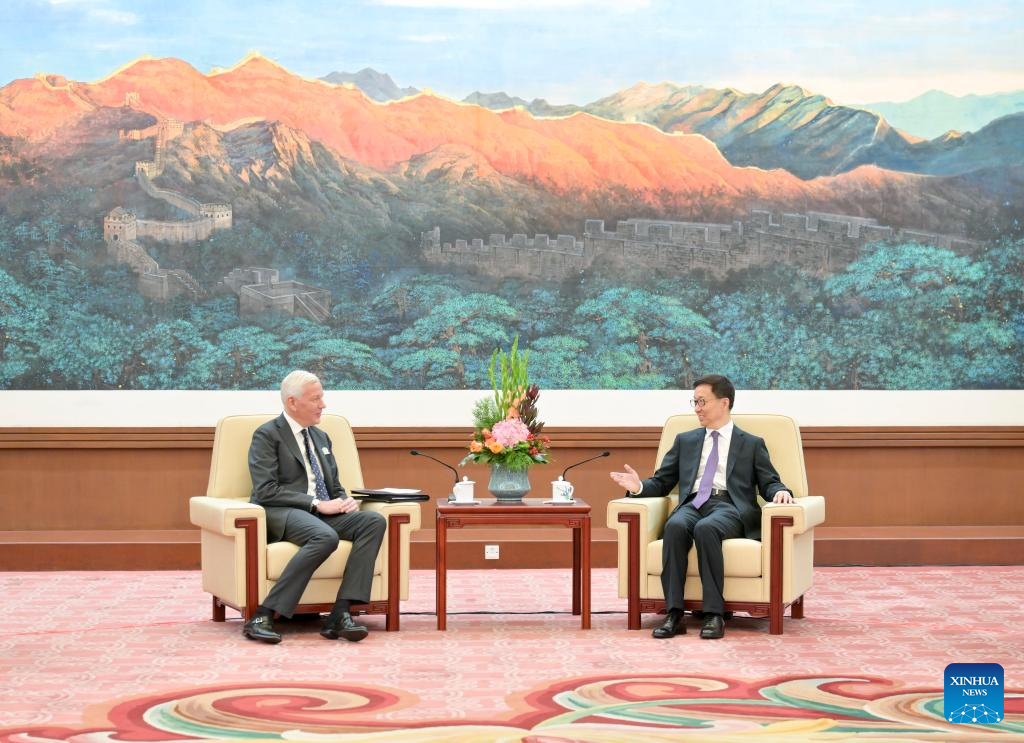 Chinese Vice President Han Zheng meets with Dominic Barton, chairman of the mining group Rio Tinto, in Beijing, capital of China, Dec. 12, 2023. (Xinhua/Gao Jie)