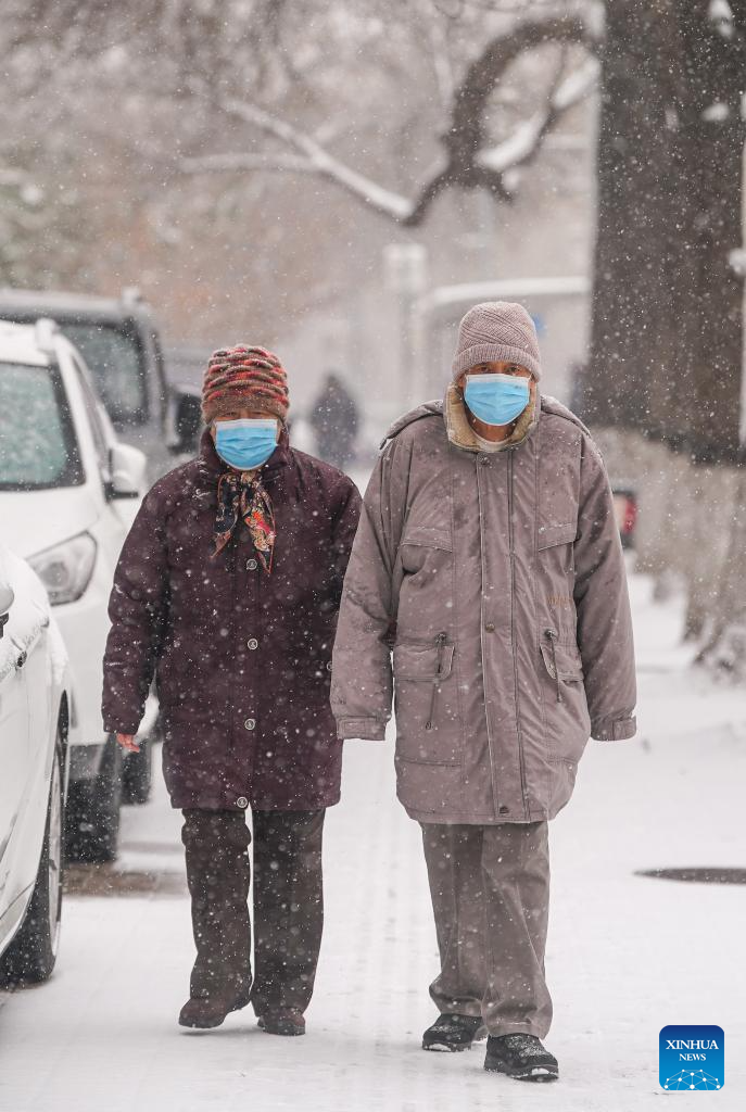 Pedestrians are pictured on Yangfangdian Road in Beijing, capital of China, Dec. 13, 2023. (Xinhua/Chen Yehua)