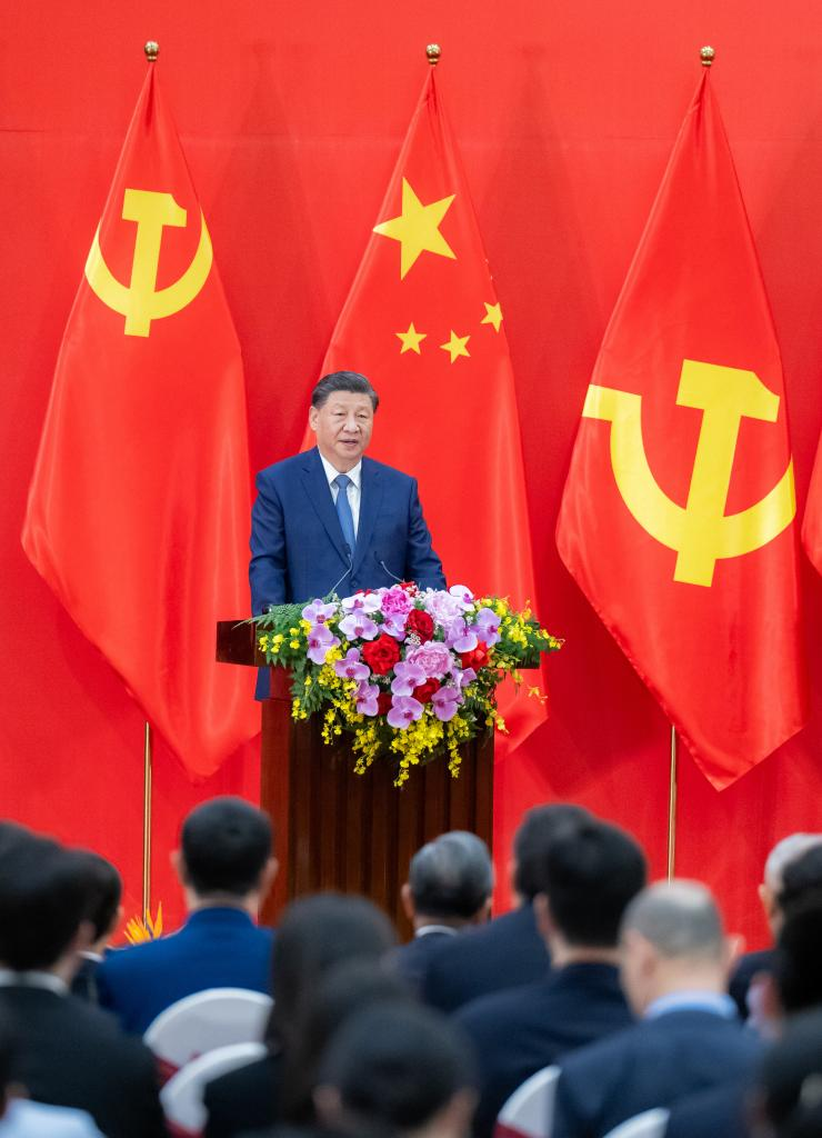 On behalf of the CPC and the Chinese government, Xi extended his warm regards to the old and new friends who are committed to China-Vietnam friendship. He pointed out that on Tuesday he and Trong jointly announced their decision to build a China-Vietnam community with a shared future that carries strategic significance, thus ushering in a new stage in the relations between the two parties and countries.