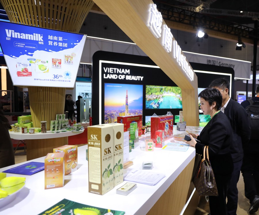 People visit the booth of Vietnam at the 6th China International Import Expo (CIIE) in east China's Shanghai, Nov. 6, 2023. (Xinhua/Li Mengjiao)