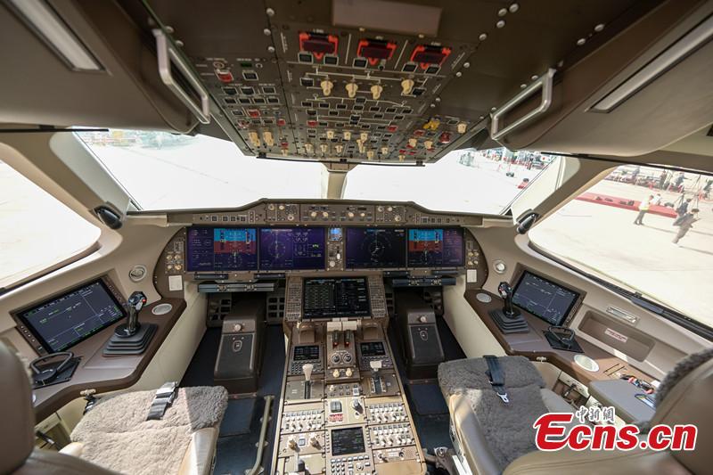 An interior view of cockpit of China's homegrown C919 aircraft displayed at Hong Kong International Airport, Dec. 13, 2023. (Photo: China News Network/Chen Yongnuo)