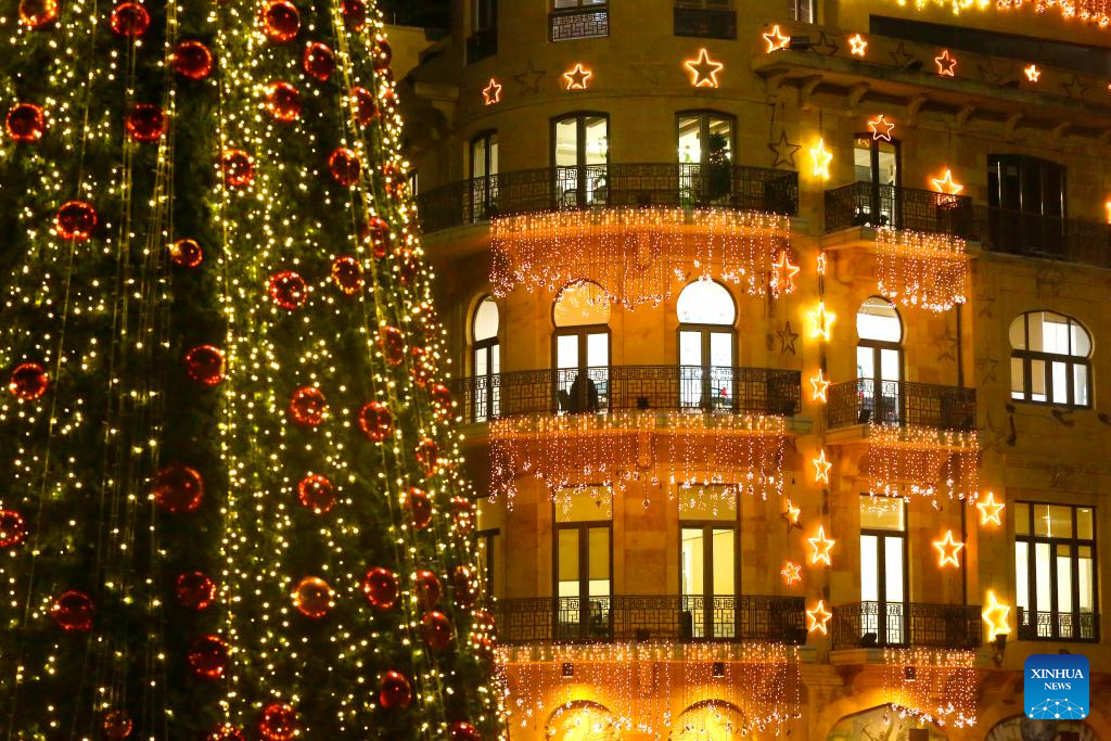 Photo taken on Dec. 15, 2023 shows light decorations for Christmas in Beirut, Lebanon. (Xinhua/Bilal Jawich)
