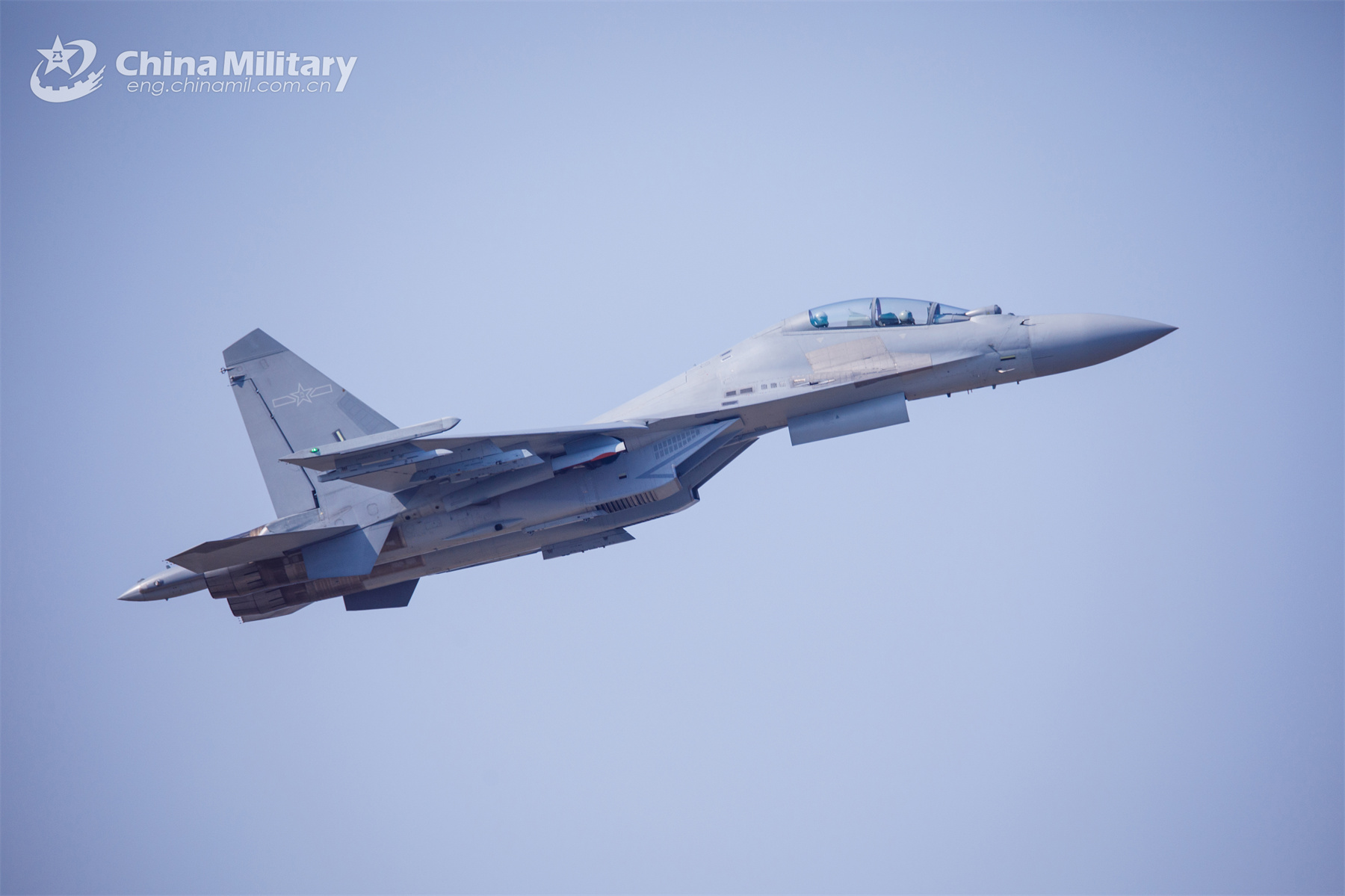 A fighter jet attached to an aviation brigade of the air force under the PLA Eastern Theater Command takes off for a flight training exercise on December 1, 2023. (eng.chinamil.com.cn/Photo by Wang Yijie)