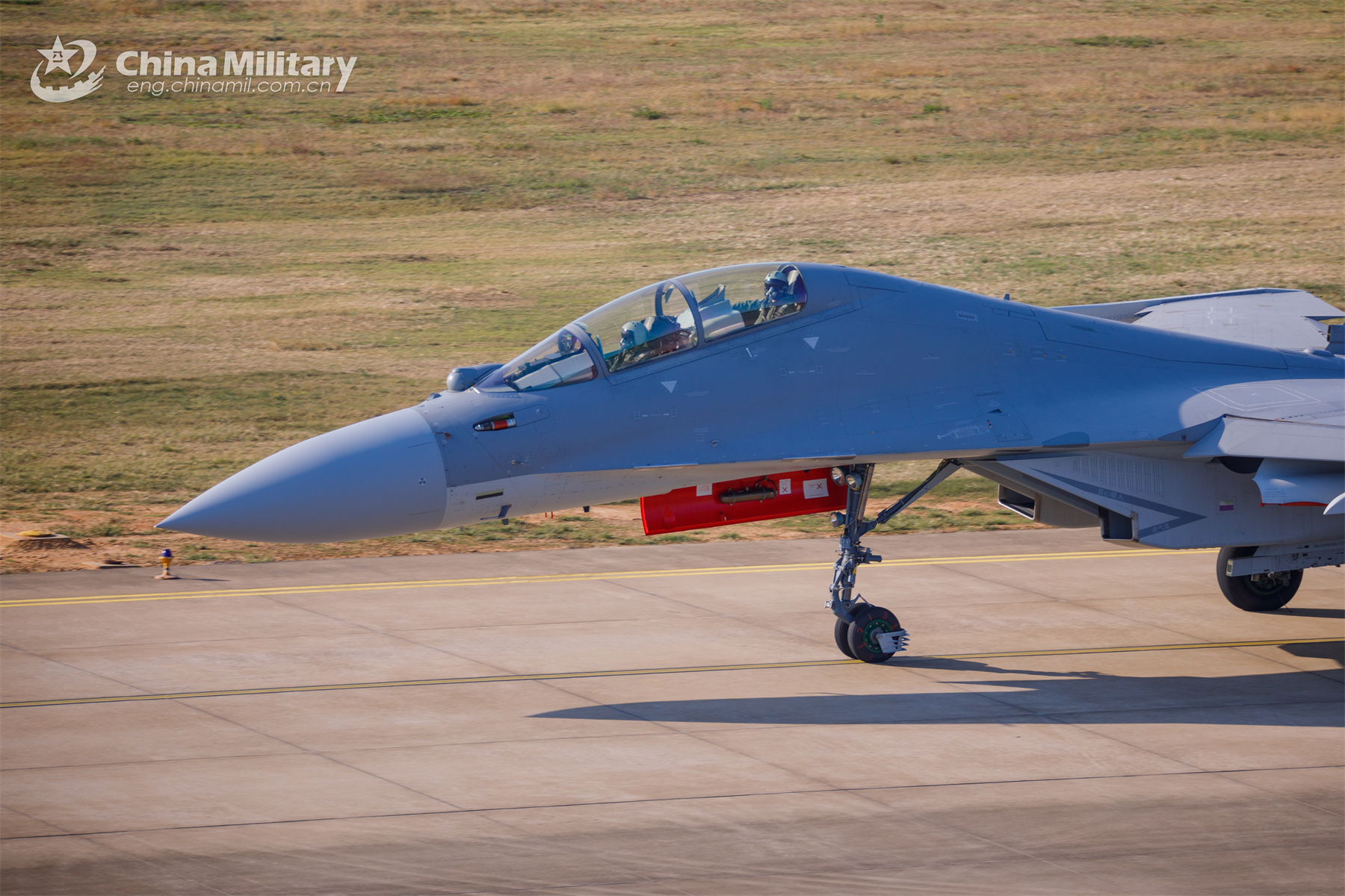 A fighter jet attached to an aviation brigade of the air force under the PLA Eastern Theater Command stands on the runway during a flight training exercise on December 1, 2023. (eng.chinamil.com.cn/Photo by Wang Yijie)