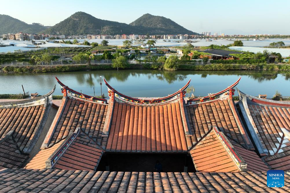 This aerial photo taken on Nov. 20, 2023 shows a view of Douxiang Village in Longhai District of Zhangzhou City, southeast China's Fujian Province. Located at the eastern end of the maritime Silk Road, Fujian has given play to its unique strengths in the joint implementation of the Belt and Road Initiative (BRI) and achieved fruitful results in building the core region of the 21st Century Maritime Silk Road.