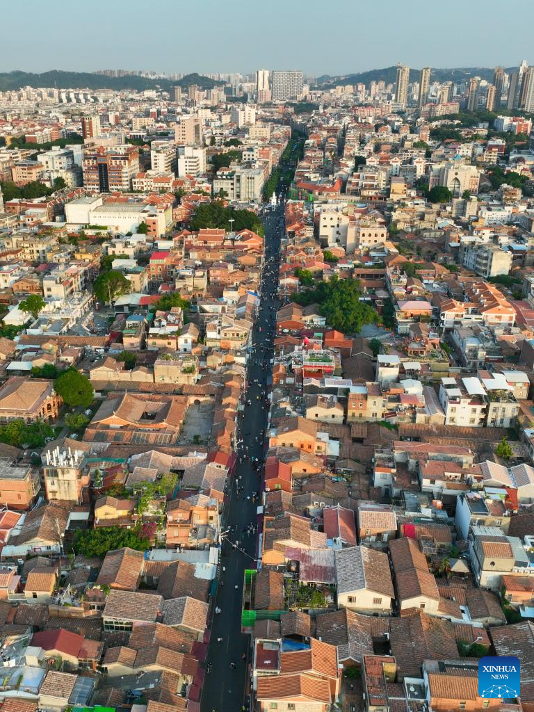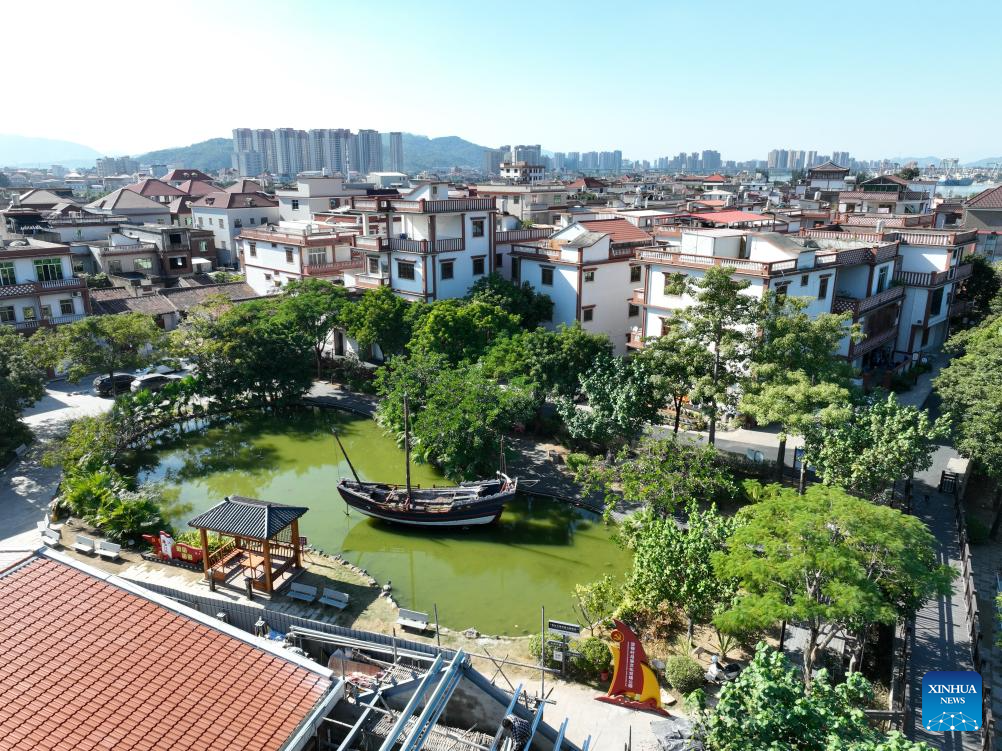This aerial photo taken on Nov. 20, 2023 shows a street in Douxiang Village in Longhai District of Zhangzhou City, southeast China's Fujian Province. Located at the eastern end of the maritime Silk Road, Fujian has given play to its unique strengths in the joint implementation of the Belt and Road Initiative (BRI) and achieved fruitful results in building the core region of the 21st Century Maritime Silk Road.